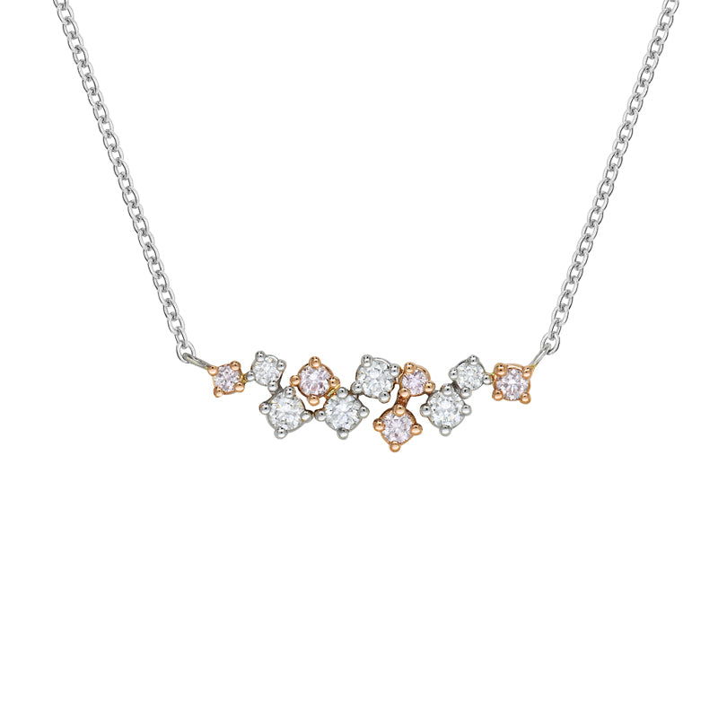Radiating warmth and romance, the Blush Bisous Necklace captures the beauty of life’s sweetest moments. Set in 18ct rose and white gold, its delicate cluster of natural Argyle pink diamonds and fine white diamonds glimmers with effortless elegance. Finished with a refined white gold chain, this necklace is the perfect everyday companion – subtle enough for daily wear yet luminous enough to light up every special occasion.