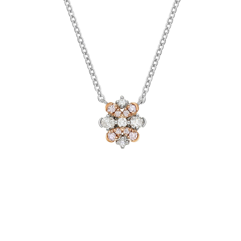 Delicate and radiant, the Blush Corinne Necklace captures the charm of nature in bloom. Crafted in 18ct rose and white gold, its intricate arrangement of natural Argyle pink diamonds, brilliant whites, and oval cuts forms a graceful, floral-inspired design. Perfect for bringing a touch of sparkle to your everyday or adding elegance to a special occasion, this necklace is a beautiful expression of refined femininity.