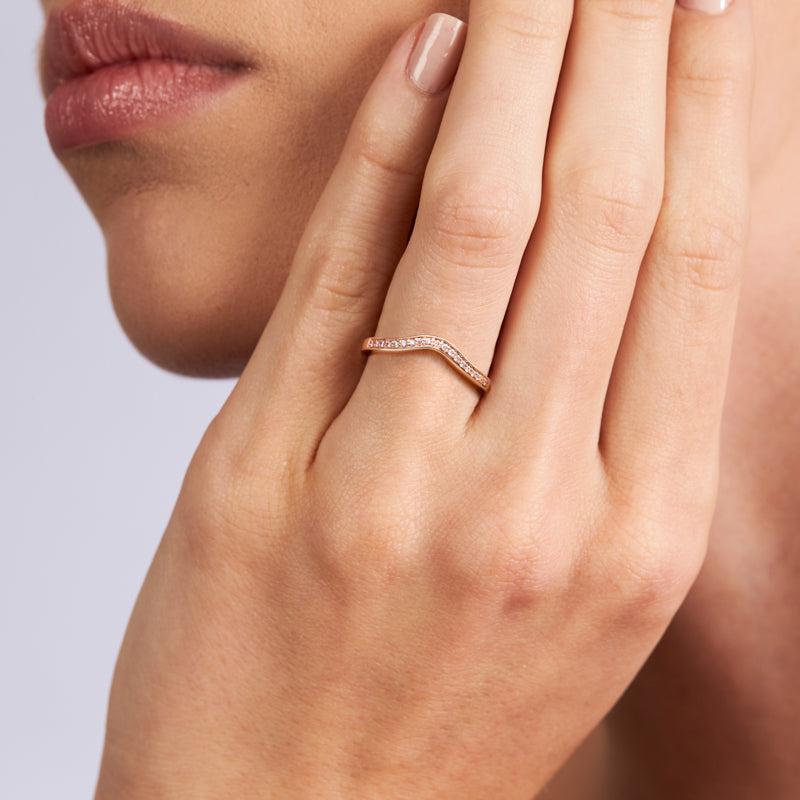 The Florence wedder has been designed to sit seamlessly alongside the Florence ring, along with other Pink Kimberley rings. This is the perfect sleek wedding band to add sparkle and beauty to your ring stack! Crafted in 18ct rose and white gold and featuring exquisite Argyle pink diamonds, this piece is wearable and elegant.