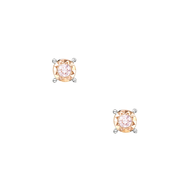 エレガントで控えめな「ブラッシュ ステラ スタッド イヤリング」は、テクスチャード加工を施したローズゴールドのベゼルにセットされたファンシーライトピンクダイヤモンド1石が、アーガイル鉱山産ダイヤモンドのピンクカラーをより一層引き立てます。希少なラグジュアリー感を漂わせるこのイヤリングは、18カラットのローズゴールドで丁寧に仕上げられています。